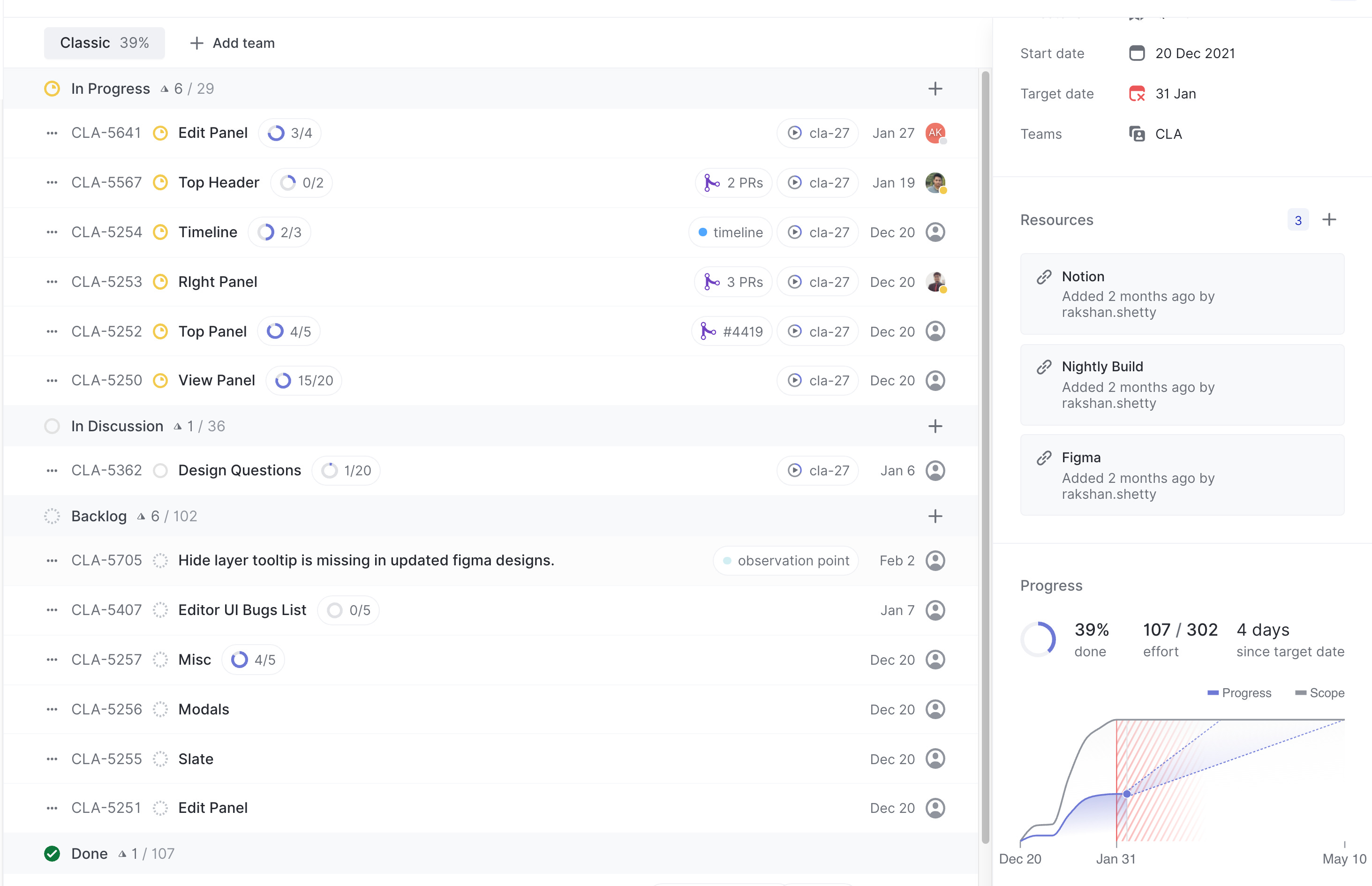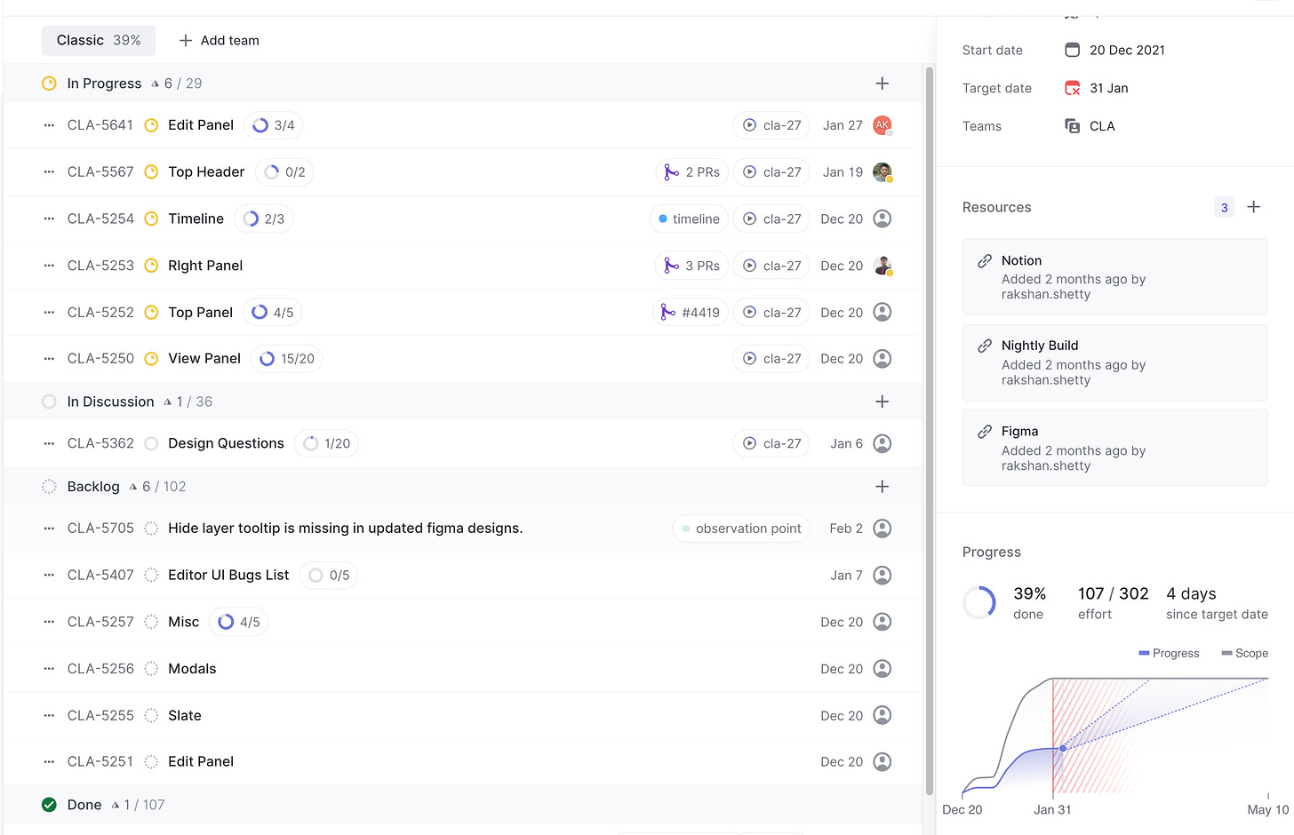 You can see the entire project clearly at the top level and you can dig into each section right down to the PR. The links to Notion docs and nightly builds makes this issue tracker a huge asset to anyone working on the project. It allows me to reflect upon my work and find things that need improving.