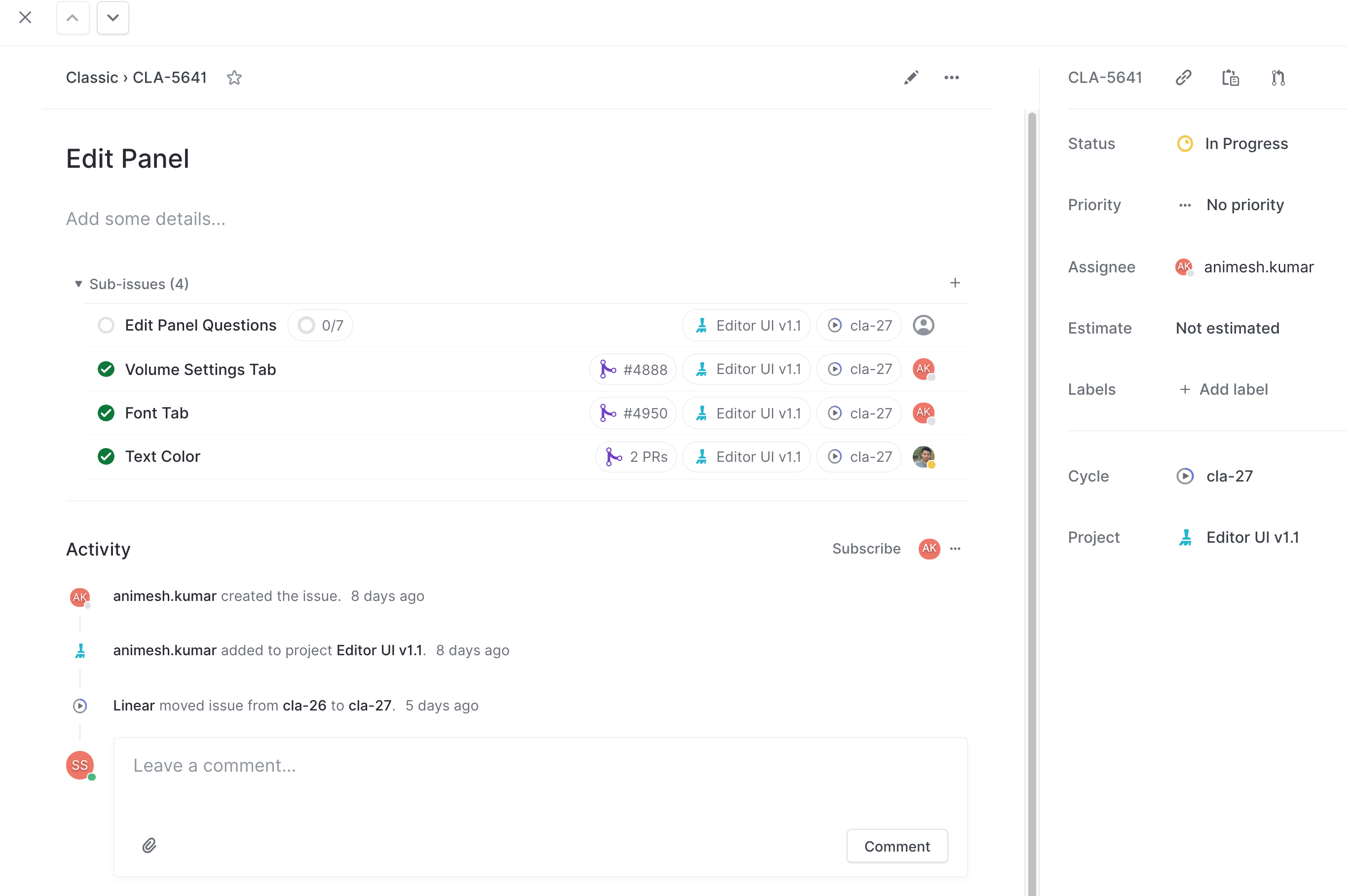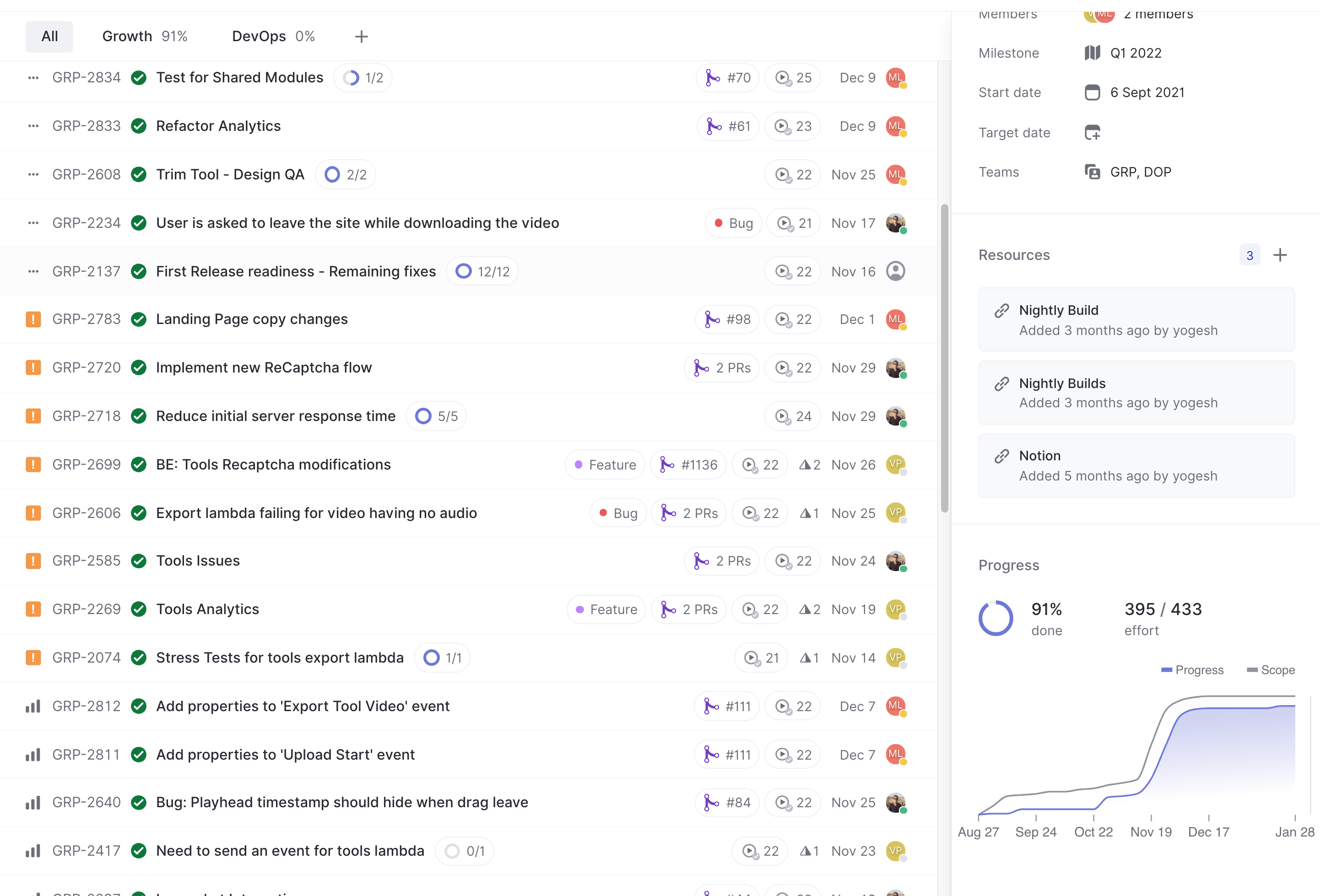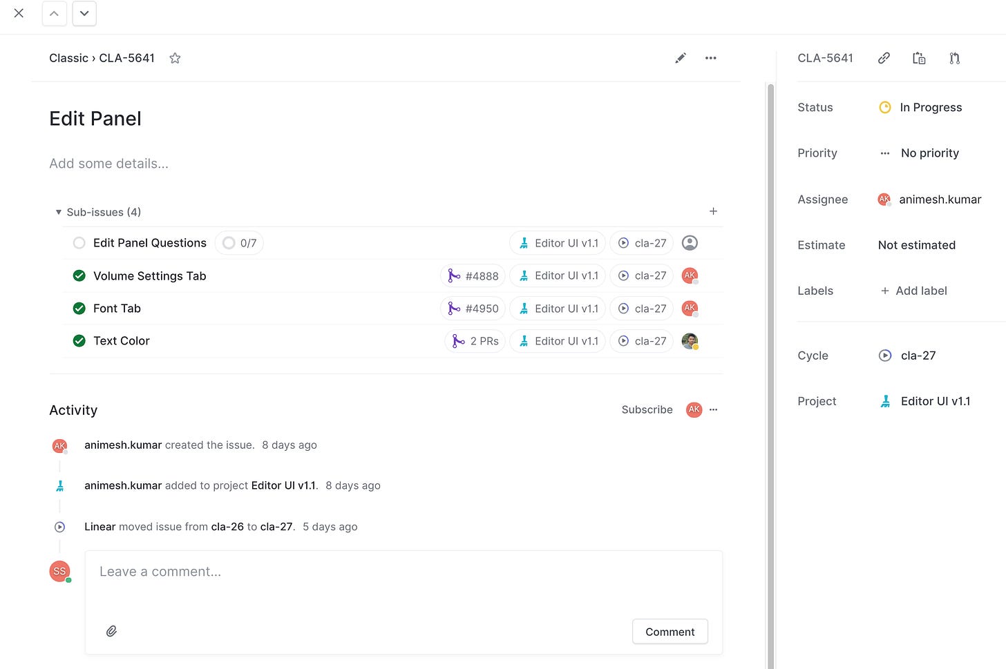 The other attitude that reflects in a chaotic issue tracker is one where work happens elsewhere — on slack or Notion — and the issue tracker is used merely as a placeholder for one-liner tickets. Instead, the issue tracker should replace most Notion/Slack/Email for execution related communication. This is why we don’t use Jira at InVideo. Choosing an issue tracker that you don’t mind spending all day in is a very high RoI activity. We finally settled on Linear.